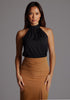 Refined and contemporary, the Juniper Halter High-Neck Top in Pine Green delivers modern elegance with effortless ease. Designed with a sleek high-neck halter silhouette, this sleeveless style draws focus to the shoulders and neckline, while a subtle cutout detail adds a clean, contemporary edge. Crafted from a lightweight, breathable fabric, Juniper drapes smoothly against the body, offering comfort without compromising polish.