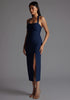 Understated yet impactful, the Maria Halter Midi Dress in taupe captures timeless elegance with modern minimalism. Crafted from premium stretch fabric, this figure-hugging silhouette features a structured halter neckline and a sleek, streamlined cut that elongates the frame. A thigh-high split offers a glimpse of skin, balancing sophistication with subtle sensuality.
