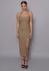 Maria Halterneck Thigh Split Midaxi Dress - Taupe