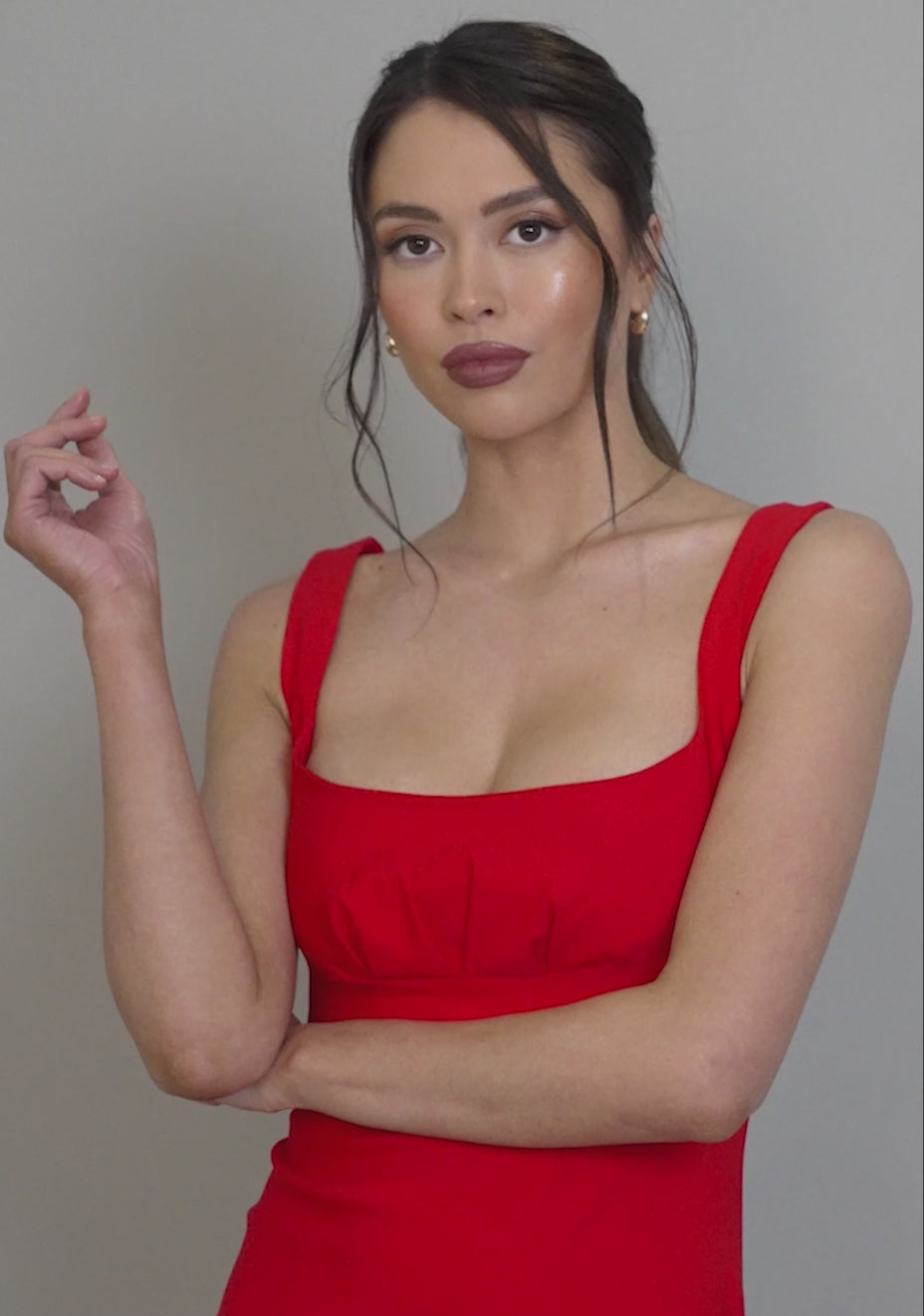 Bold elegance meets effortless structure in the Evette Dress, designed in vibrant red for a statement with impact. Crafted from sculpting stretch fabric, it hugs the figure with clean lines and subtle shaping, enhanced by a ruched bust detail that softens the silhouette. The square neckline and wide straps offer a flattering, supportive frame, while a structured bodice ensures a smooth, confident fit.
